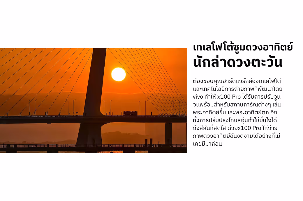 ผลลัพธ์ที่ได้คือ ไม่ว่าจะเป็นดวงอาทิตย์ ดวงจันทร์ หรือแม้แต่ภาพบุคคลในสภาพแสงที่ยากลำบาก เลนส์ตัวนี้ก็พร้อมมอบผลลัพธ์ที่คมชัด มีสีสันที่แม่นยำ และมีมิติราวกับถ่ายด้วยกล้องโปรจริงๆ นี่คือการเดิมพันที่กล้าหาญของ Vivo ที่พาสมาร์ทโฟนก้าวข้ามขีดจำกัดไปอีกขั้นครับ!